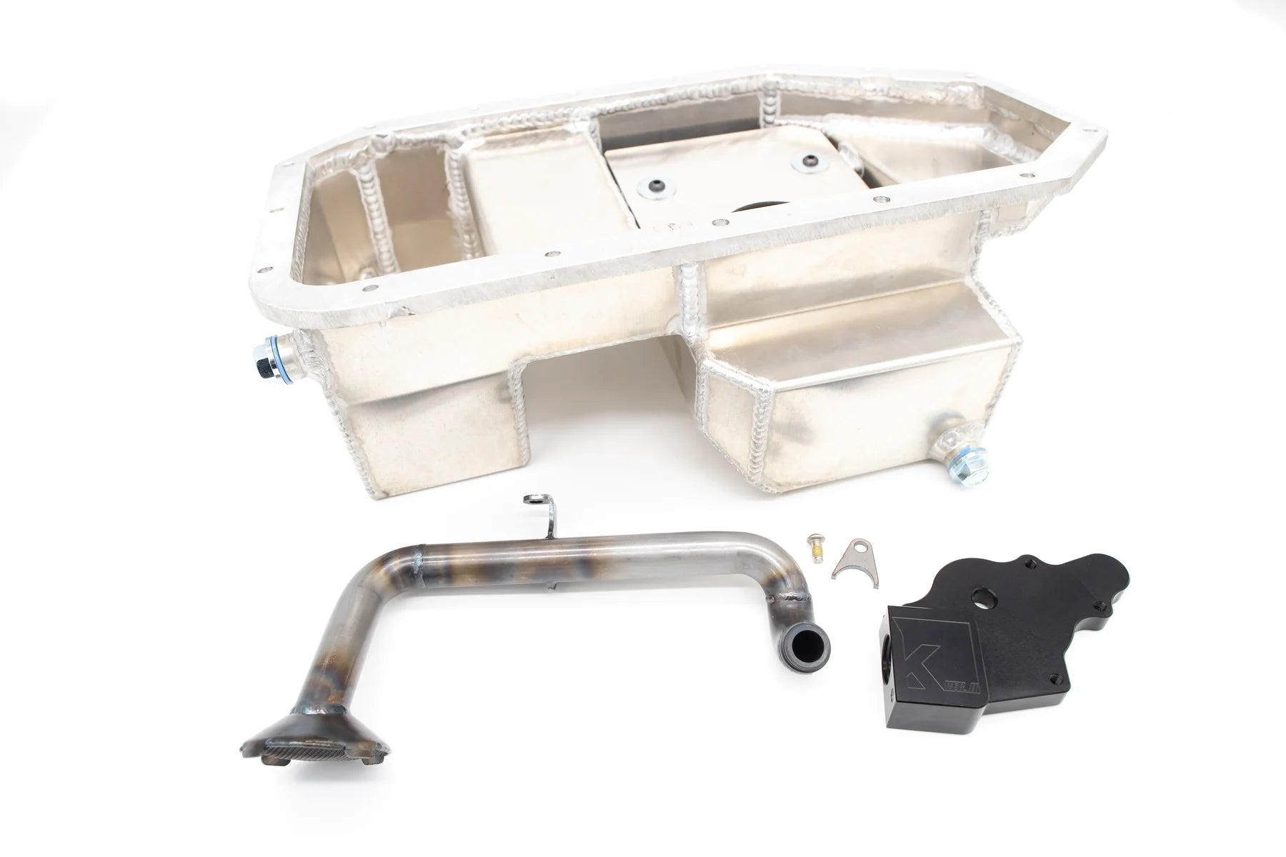 -Baffled aluminum V2 oil pan with pickup tube